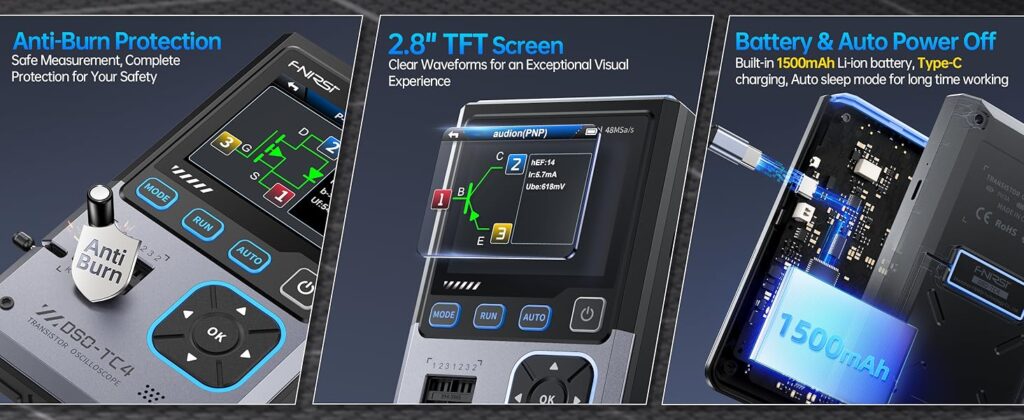 Jedan od najjačih segmenata FNIRSI ponude su prenosni digitalni osciloskopi. Za razliku od klasičnih laboratorijskih osciloskopa, FNIRSI modeli su: