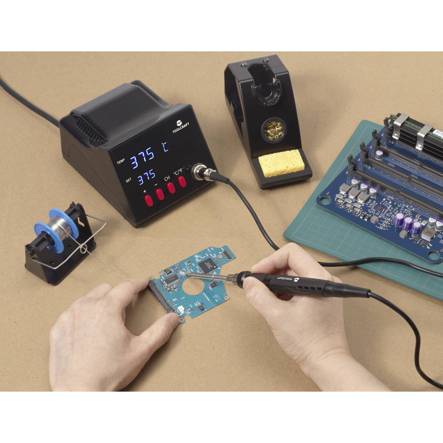 Karakteristika Specifikacija Model TOOLCRAFT TO-8962 Snaga 70 W Napon AC 230 V, 50 Hz Temperaturni opseg 200 °C … 480 °C Kontrola temperature Digitalni mikroprocesor, rezolucija 1 °C ESD zaštita Usklađeno s IEC 61340-5-1, uzemljenje radne površine Grejač Keramički element za brzo zagrijavanje i oporavak Tip držača Metarski držač sa keramičkom spužvom Priključak lemilice Standardni 3-pin ESD konektor Sondni tip Kompatibilno s TO-8962-HT i TO-8962-ET lemilica Dimenzije stanice (DxŠxV) 120 × 110 × 90 mm Dimenzije lemilice ( DxØ ) 180 × 18 mm Težina stanice ≈ 1.2 kg Automatski sleep-mode nakon 10 min neaktivnosti LED indikatori Rad (zelena), grejanje (crvena)