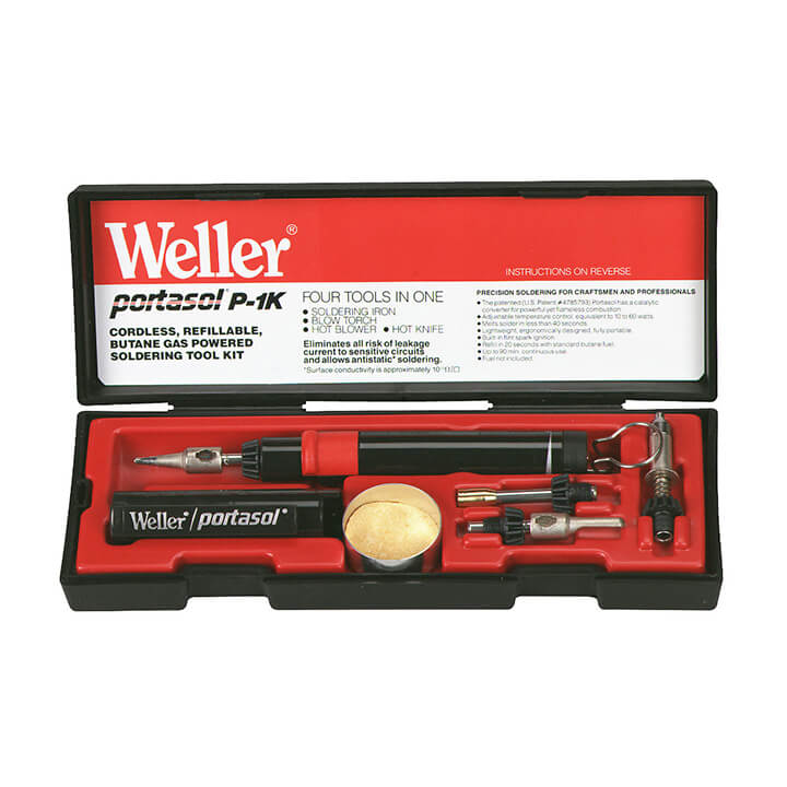 Weller P1K je **kompaktna i snažna gasna lemilica**, namenjena za profesionalne korisnike kojima je potrebna maksimalna fleksibilnost bez zavisnosti od električnog napajanja. Radi na standardni butan gas (upaljački gas) i nudi **snagu do 125 W (ekvivalentno)**, sa brzim zagrevanjem i stabilnim radom čak i pri dugotrajnom korišćenju.