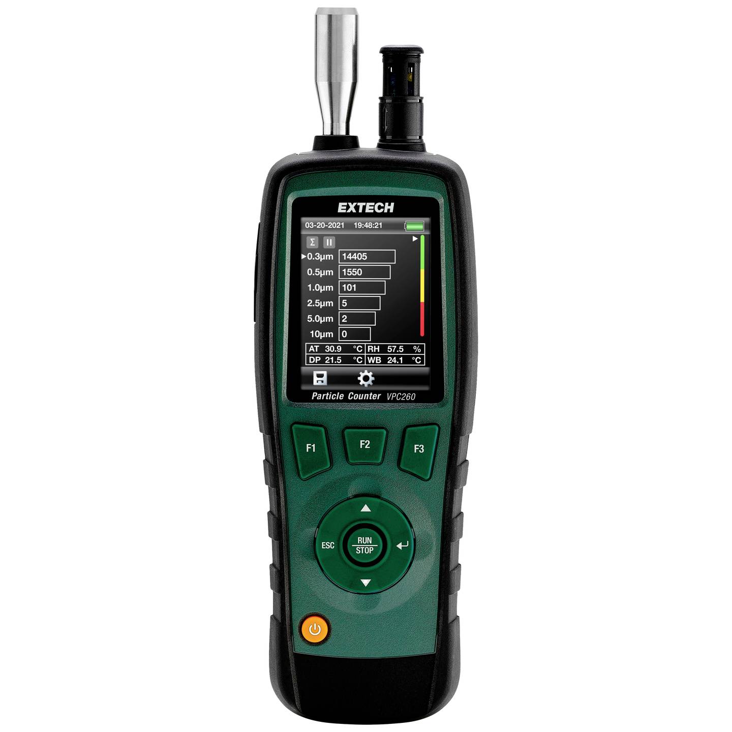 Extech VPC260 je prenosivi, višekanaličни detektor i brojač čestica u vazduhu, namenjen za monitoring kvaliteta vazduha u čistim sobama, farmaceutskoj industriji, HVAC-R sistemima i laboratorijama. U realnom vremenu meri i beleži koncentraciju čestica različitih veličina, pružajući statistiku za analizu zagađenja.