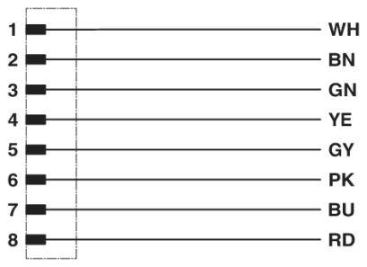 Boja kabela: crna – Broj polova: 8 – Duljina kabela: 1.50 m – Kontaktni materijal: CuSn – Materijal plasta: PUR – Nazivna struja: 1.50 A – Nazivni napon: 30 V – Povrsina kontakta: Au – Prikljucna strana B (Senzor aktivator): M8 utikac, ravan – Strana prikljucenja A (Senzor aktivator): kabel, otvoreni kraj – Temperatura (maks.): +80 ?C – Temperatura (min): -40 ?C – Znacajke senzorskog/aktivatorskog kabla: bez halogena