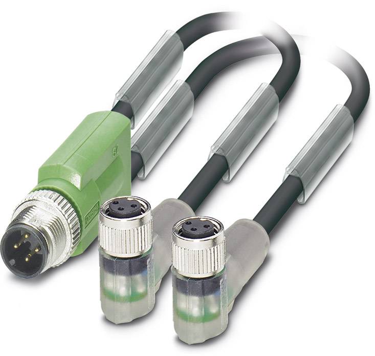 Boja kabela: crna – Broj polova: 3 – Duljina kabela: 3.00 m – Kodiranje: A – Konstrukcija konektor uticnice: adapter, oblik y – Materijal plasta: PUR – Nazivna struja: 4 A – Nazivni napon: 24 V – Poprecni presjek voda (Senzorsko/aktivatorsko ozicenje): 0.25 mm2 – Prikljucna strana B (Senzor aktivator): M12 uticnica, kutna, M8 uticnica, kutna – Standard uticnice: senzorski konektor – Strana prikljucenja A (Senzor aktivator): M12 utikac, ravan – Tip navoja, strana za prikljucivanje: M12 – Vanjski promjer: 1.17 mm – Vrsta zastite: IP65 – Znacajke senzorskog/aktivatorskog kabla: s LED