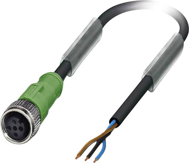 Boja kabela: crna – Broj polova: 3 – Duljina kabela: 10.00 m – Kodiranje: A – Konstrukcija konektor uticnice: zzenski konektor, ravni – Materijal plasta: PUR – Nazivna struja: 4 A – Nazivni napon: 250 V/AC, 250 V/DC – Poprecni presjek voda (Senzorsko/aktivatorsko ozicenje): 0.34 mm2 – Prikljucak (komponente): pletenica – Prikljucna strana B (Senzor aktivator): M12 uticnica, ravna – Standard uticnice: senzorski konektor – Strana prikljucenja A (Senzor aktivator): kabel, otvoreni kraj – Tip navoja, strana za prikljucivanje: M12 – Vanjski promjer: 1.27 mm – Vrsta zastite: IP65