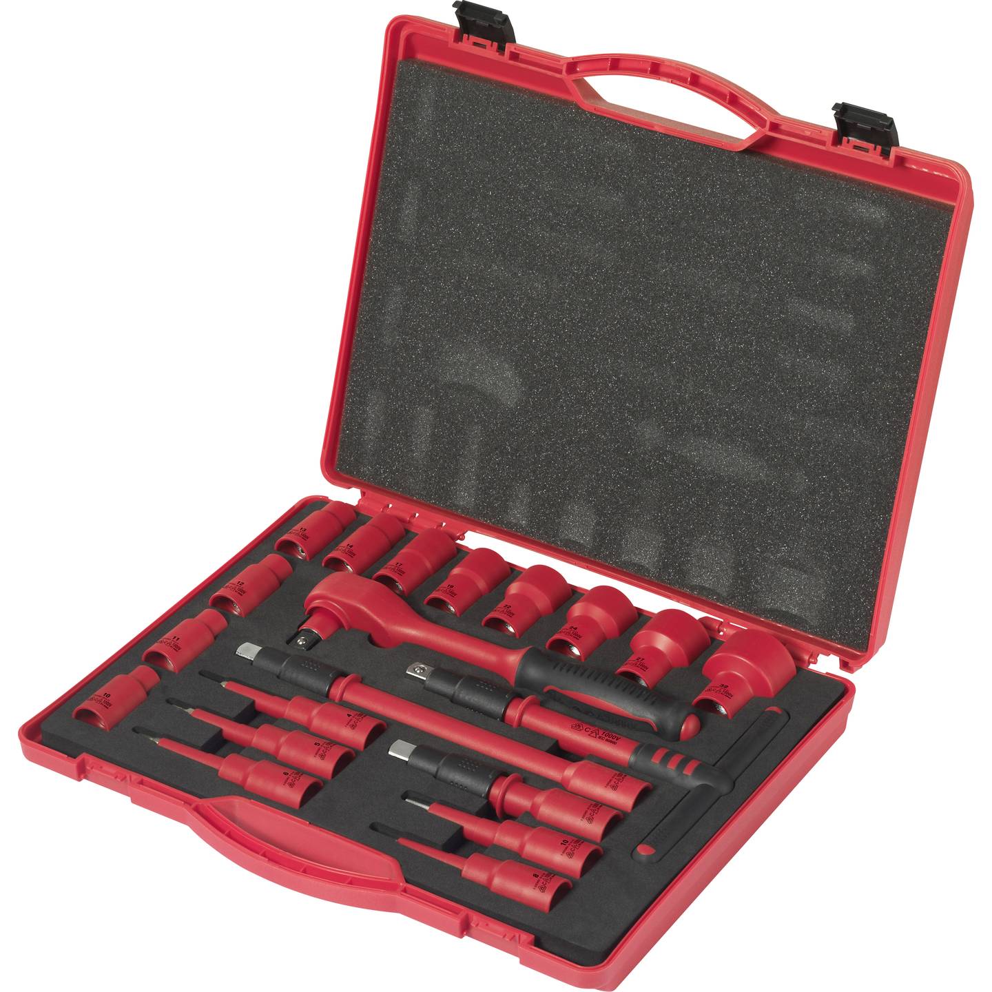 TOOLCRAFT 23003-20 (TO-9624936) je robustan i profesionalni set alata sa prihvatom 12.7 mm (1/2″), namenjen za zahtevne mehaničarske i montažne radove. Komplet uključuje čegrtaljku, T-ručicu, produžetke, nasadne ključeve i imbus (hex) bitove – sve što je potrebno za efikasan rad u radionici, servisu ili industrijskom okruženju.