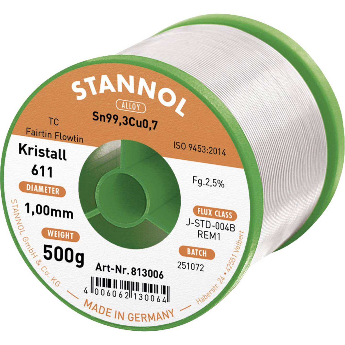 🧰 Stannol Kristall 611 Fairtin bezolovni lem – profesionalna lemna žica Sn99.3Cu0.7 sa REM1 fluksom