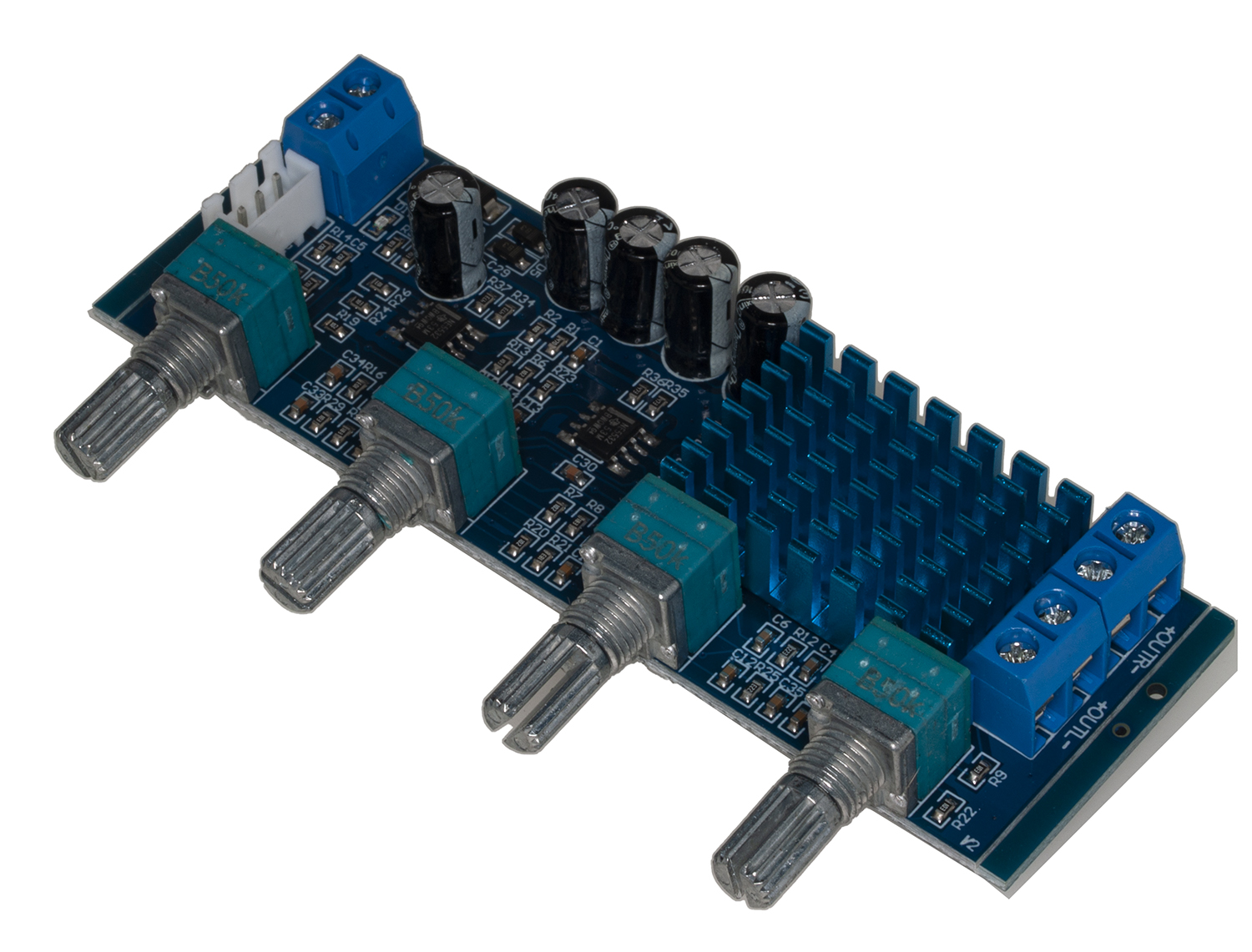 Modul je projektovan po principu „plug and play“, sa ugrađenim potenciometrima za visoke, srednje tonove, bas i ukupnu jačinu zvuka, što omogućava potpunu kontrolu zvučne slike bez dodatnih eksternih kola.