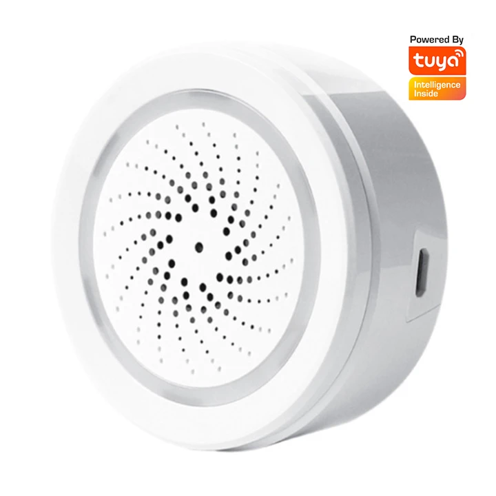 Tuya WiFi sirena 105dB predstavlja univerzalni uređaj za signalizaciju koji se lako integriše sa drugim pametnim Tuya uređajima kao što su senzori pokreta, dima, otvaranja vrata ili prozora. Kada neki od senzora detektuje aktivnost, sirena se automatski oglašava i pruža zvučni alarm od 105 dB uz dodatnu LED svetlosnu signalizaciju. Zahvaljujući integrisanom senzoru temperature i vlažnosti, sirena može poslužiti i kao multifunkcionalni sigurnosni uređaj u vašem pametnom domu.